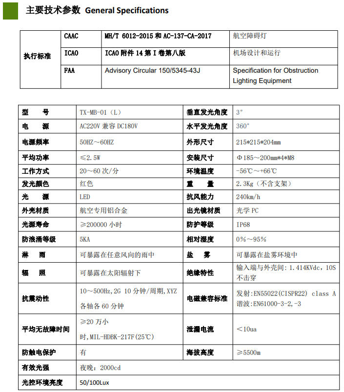 ● 自主研发先进的光学系统,聚光角度符合CAAC及ICAO要求。