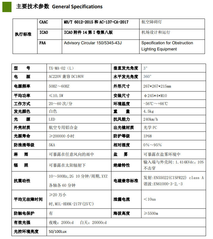 4.符合ICAO和MH/T6012-2015《航空障碍灯》标准要求。
