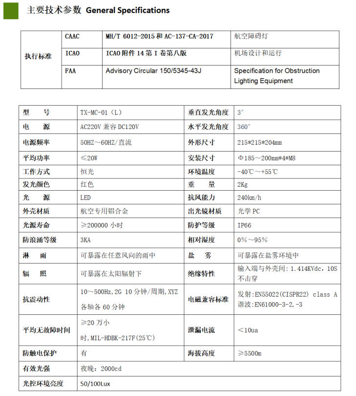 4.符合ICAO和MH/T6012-2015《航空障碍灯》标准要求。